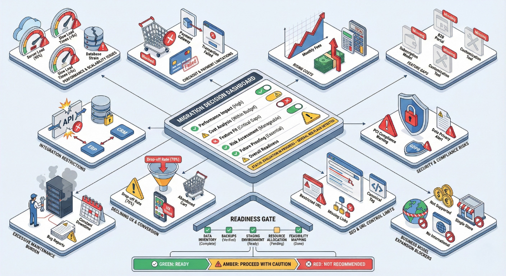 A practical, decision-focused guide for merchants with operational checks you can run immediately.Migrating an e-commerce platform is expensive and risky. Use the items below as binary decision signals (Yes/No) plus concrete checks. If you hit 3+ “Yes” items and the impact is material to revenue or growth, start formal migration … Read More “When to Migrate Your E-commerce Platform: 10 Signs It’s Time”