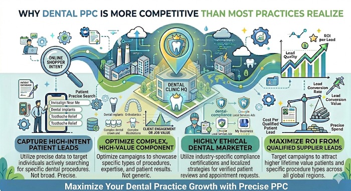 When someone searches “emergency dentist near me” or “Invisalign consultation,” they are ready to book. They will call the first practice that appears, looks credible, and makes the next step easy. General dental PPC campaigns that send all clicks to a homepage lose that patient in under ten seconds.