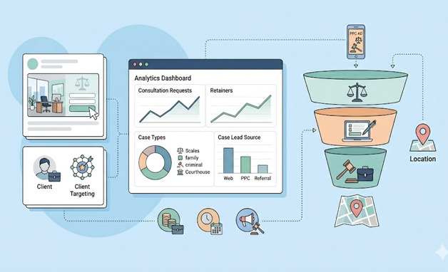 CGColors builds law firm PPC campaigns around how legal clients actually search, by practice area, by location, by specific legal situation. We handle everything from keyword targeting and compliant ad copy to landing pages and call tracking so every dollar in your budget works toward signed clients.